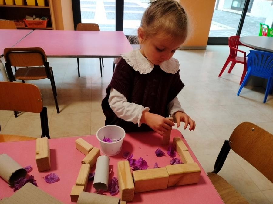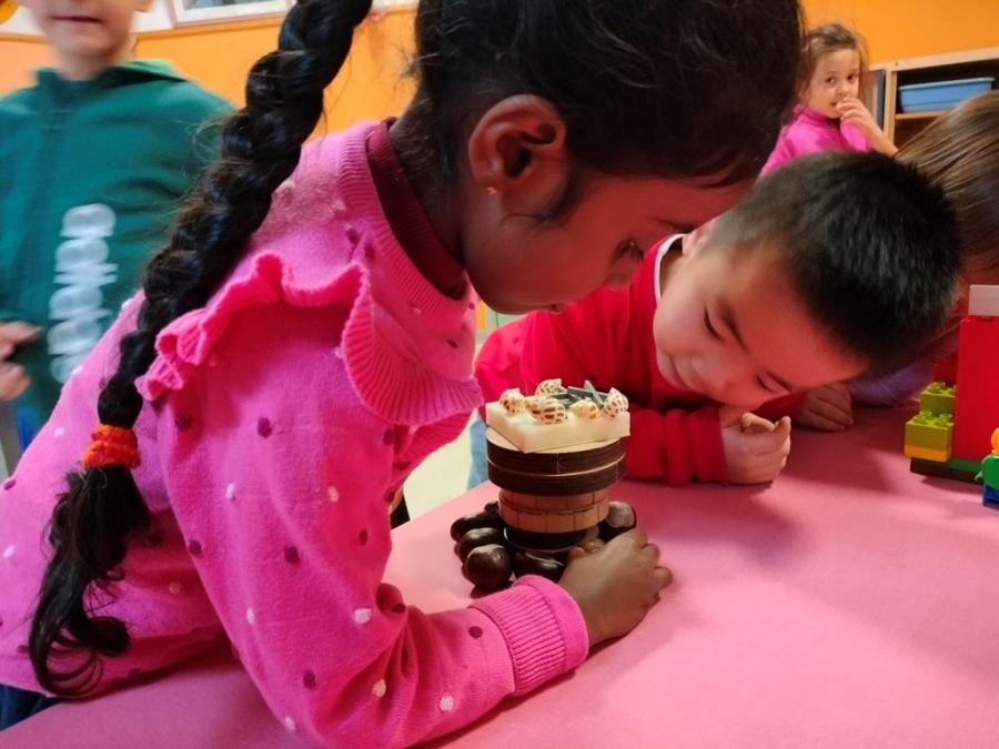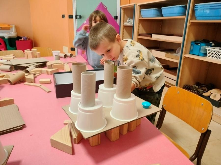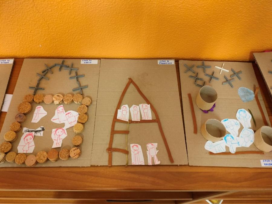Dopo aver scoperto che gli animali, in inverno si riparano dal freddo rifugiandosi nelle loro tane, i bambini hanno osservato che anche loro, con il freddo, amano stare in casa a giocare e trascorrere il tempo con la loro famiglia. Con creatività i bambini hanno costruito case diverse usando materiale destrutturato. In un secondo momento con materiali di recupero hanno provato a costruire la propria casa inserendovi, all’interno, i componenti della famiglia.