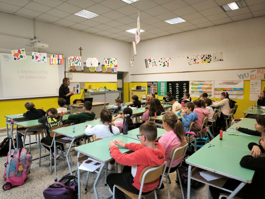 Gli alunni della classe quarta Primaria Campostrini di Montorio hanno approfondito l’antica civiltà babilonese attraverso un viaggio nella città di Babilonia, vista attraverso le rovine ancora oggi esistenti e le relative ricostruzioni elaborate dagli archeologi. In seguito hanno effettuato un laboratorio pratico in cui ciascuno ha creato una tavola grafica con la rappresentazione di una piastrella della famosa porta di Ishtar..