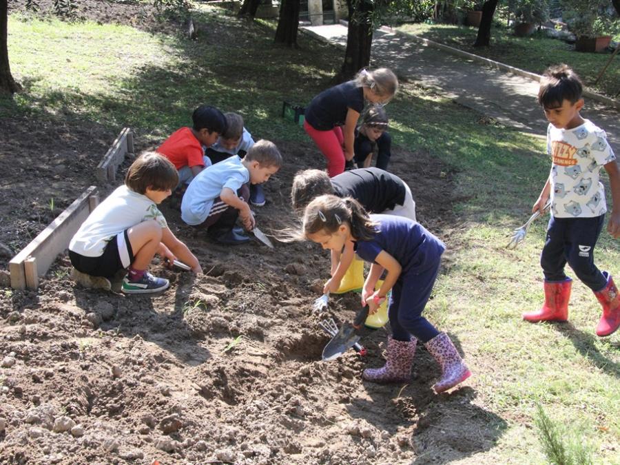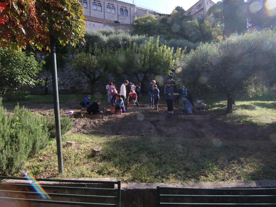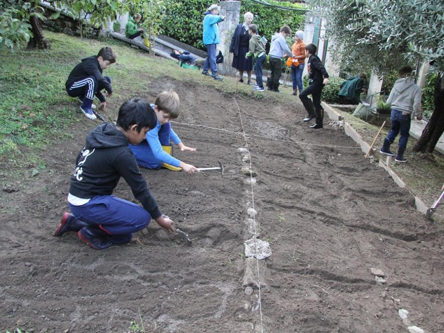 Gli alunni della Scuola Primaria Campostrini di Verona e di Montorio hanno iniziato il Laboratorio di Orto didattico. L’attenzione verso l’ambiente circostante fa parte di un processo educativo che aumenta nei bambini la consapevolezza di essere parte dell’ecosistema terra. Durante il percorso viene utilizzata una modalità di apprendimento attivo: imparare facendo. Una volta delimitata la parte di terreno dedicata all’orto per ogni classe, gli alunni insieme all’agronoma tracciano i solchi e preparano la terra per la semina. Non mancano momenti di osservazione dell’ambiente circostante come il colore del fogliame particolarmente accesso in questa stagione e la possibilità di ascoltare suoni e rumori della natura. Prossimamente le classi torneranno a visitare gli orti, ricoprire con un manto di fogliame la terra e riparare la semina dall’eventuale gelo invernale e nutrirla. Si rimane poi in attesa fiduciosa del processo di germinazione e altre sorprese della natura e dell’azione umana che saranno occasione di apprendimento e gradimento per tutti!