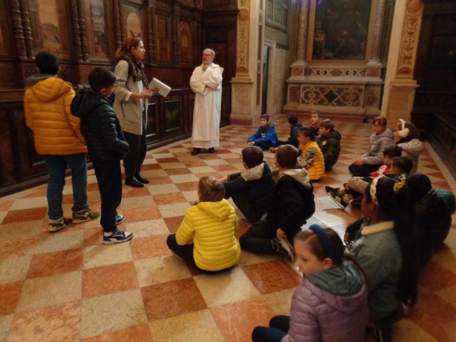 Gli alunni della classe quarta della Scuola primaria Campostrini di Verona hanno effettuato un’uscita didattica presso la Chiesa di S. M. in Organo per l’attività “Piante nella Bibbia”. Gli alunni sono andati alla scoperta di immagini e piante presenti nelle diverse opere, quadri, tarsie, al fine di approfondire la storia e le raffigurazioni del Paradiso terrestre. La ricerca è stata arricchita da una caccia al tesoro.