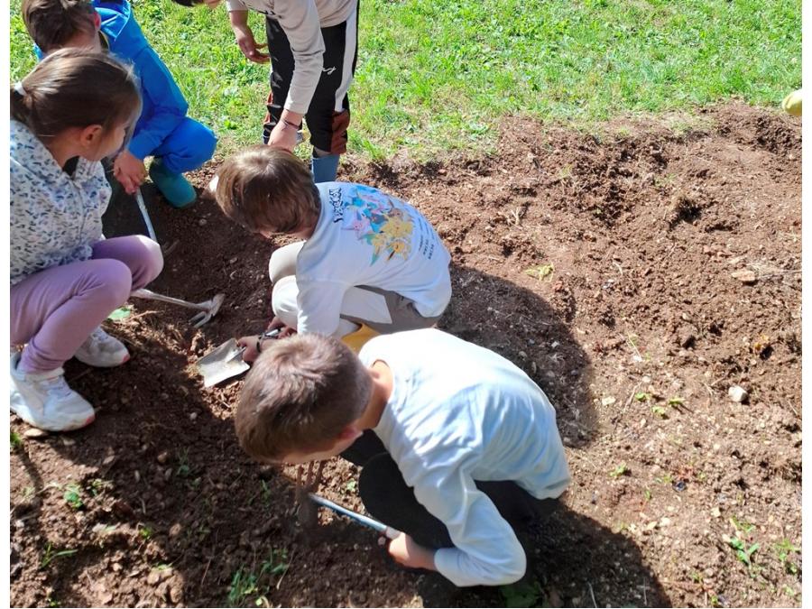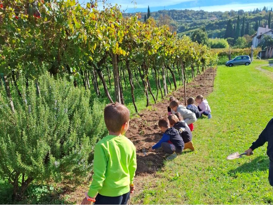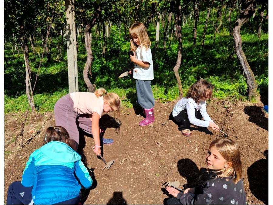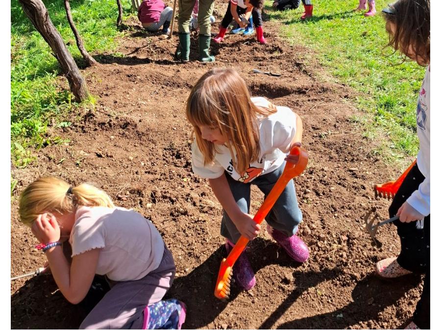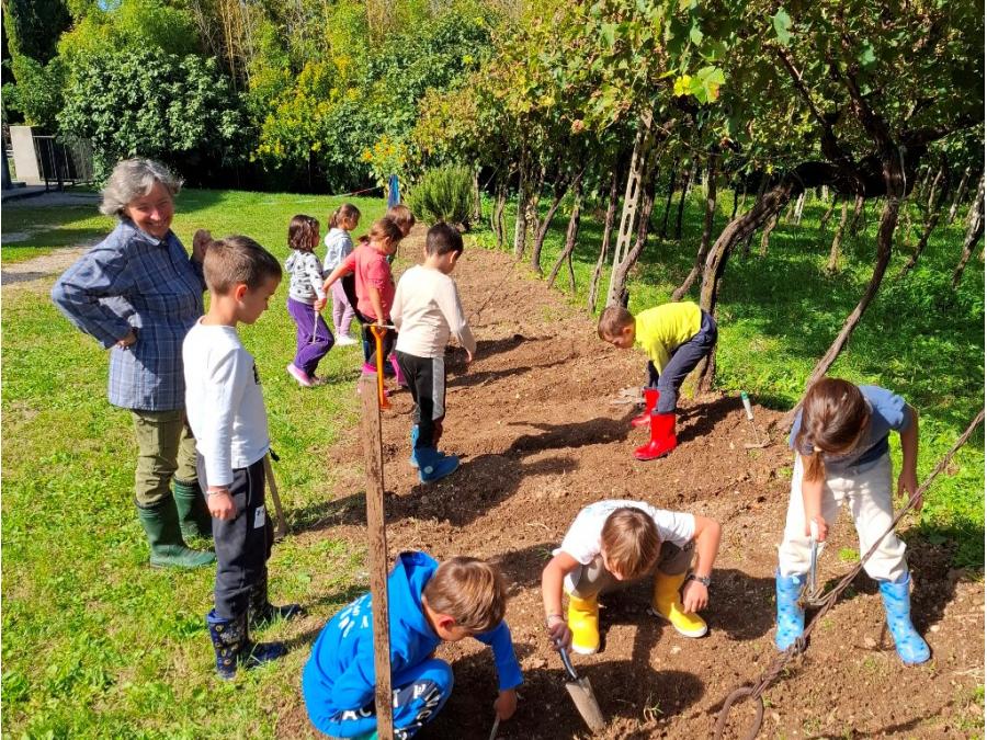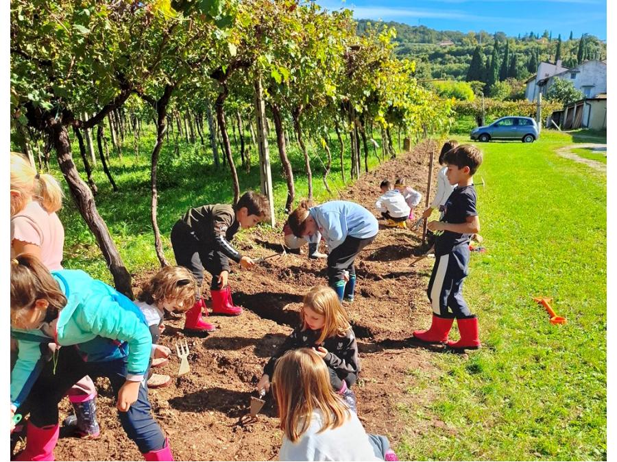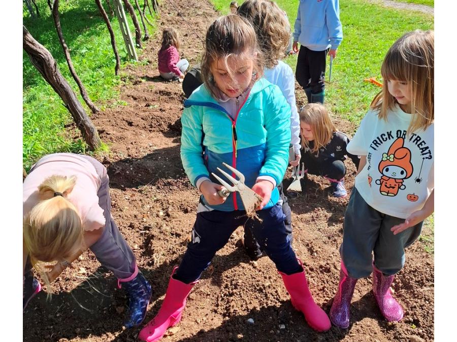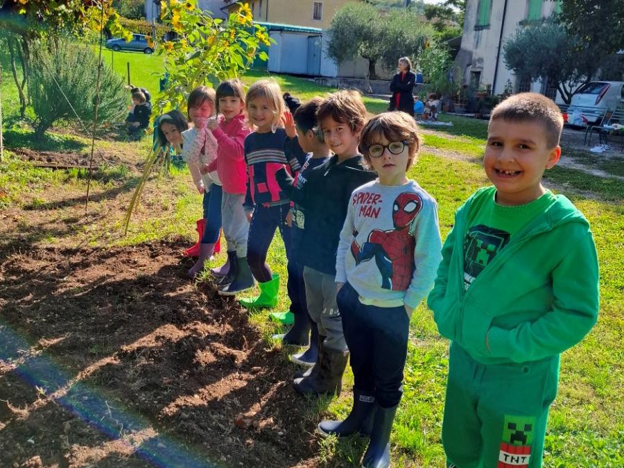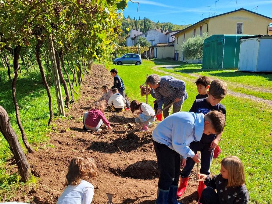 Prosegue l'attività laboratoriale di Orto didattico per gli alunni della Scuola Primaria Campostrini di Montorio e di Verona. Le classi tornano nell'orto per diverse attività: per continuare la seminare oppure per coprire con un manto di fogliame il terreno già lavorato.