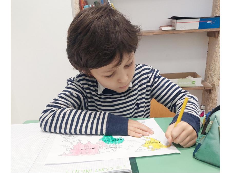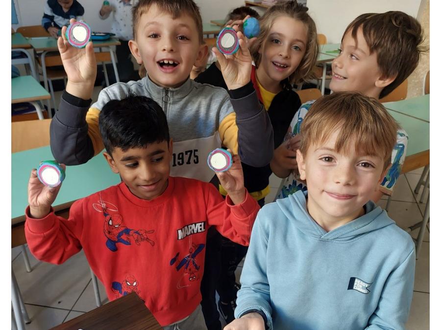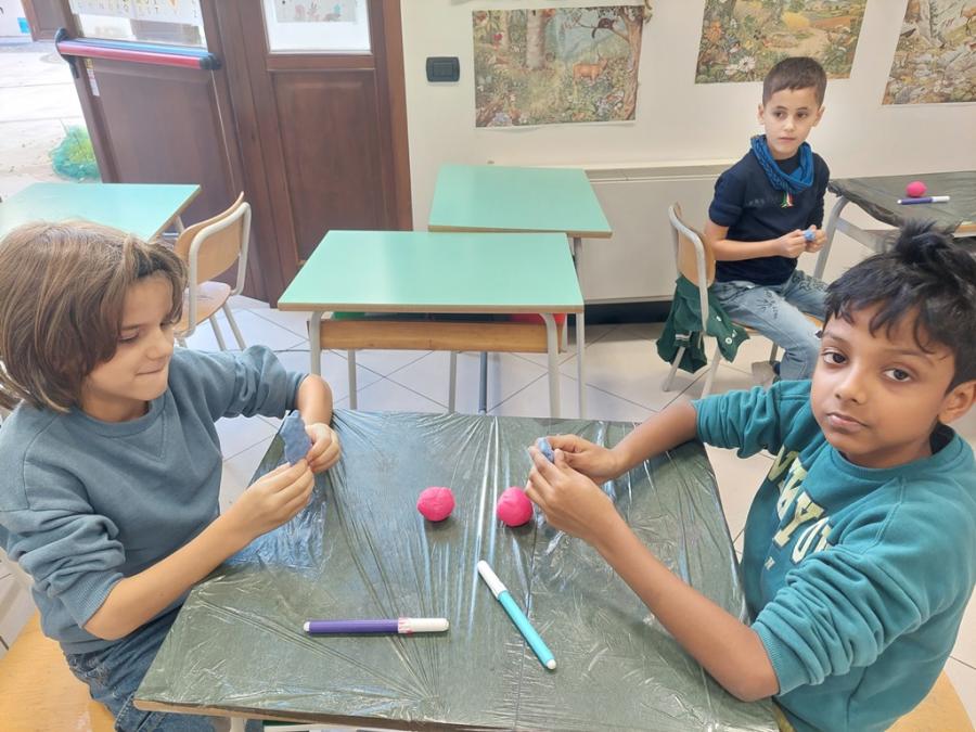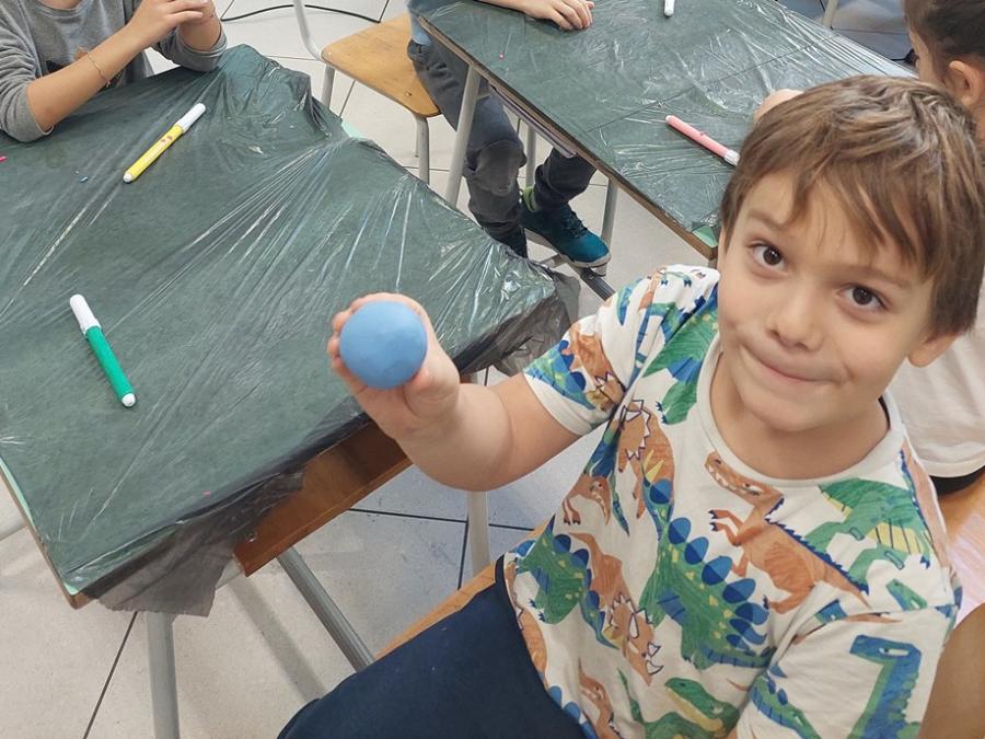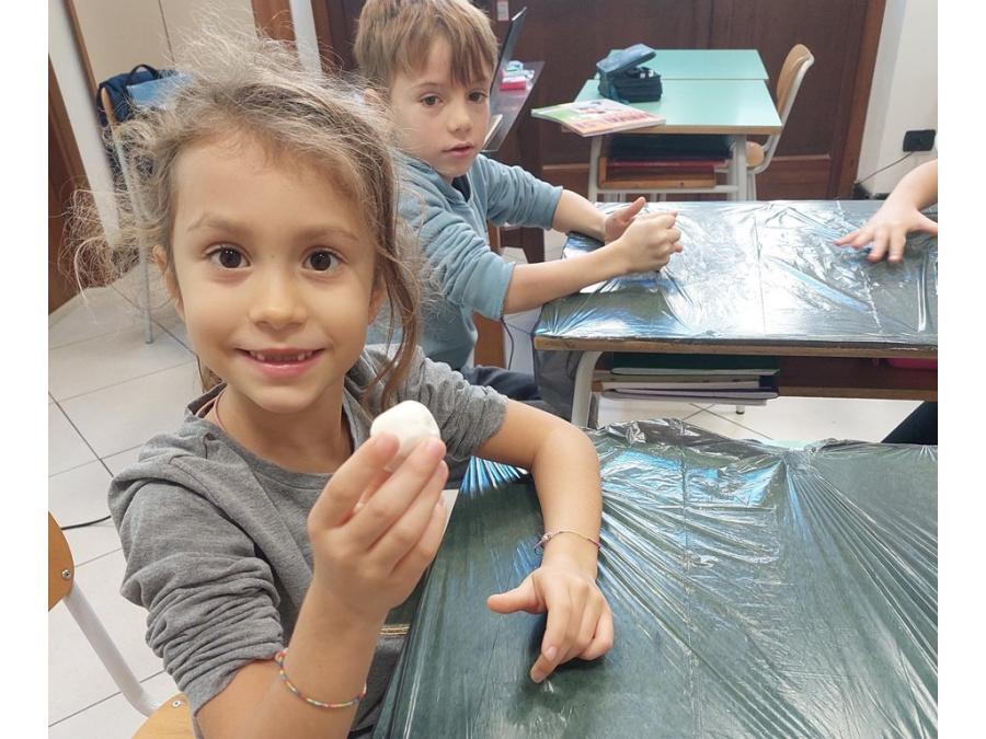 Nell’ambito della disciplina di geografia ed educazione alla cittadinanza abbiamo voluto lavorare prima che sul micro ( montagne, colline, pianure, mari, fiumi…), sul MACRO per sviluppare e potenziare la consapevolezza rispetto al nostro pianeta, inserito nel sistema solare che ha delle caratteristiche precise. E’ importante sapere come è fatto il nostro pianeta sotto i nostri piedi, oltre la crosta continentale e oceanica, perché aumenta il grado di consapevolezza e di realtà rispetto a ciò che non è visibile. Abbiamo costruito un globo con la plastilina con tutti i suoi strati, dal nucleo interno a quello esterno, al mantello fino alla crosta (oceanica e continentale). Il lavoro è stato preceduto da un’analisi dei continenti, colorati in base alla loro estensione e degli oceani e dei mari.
