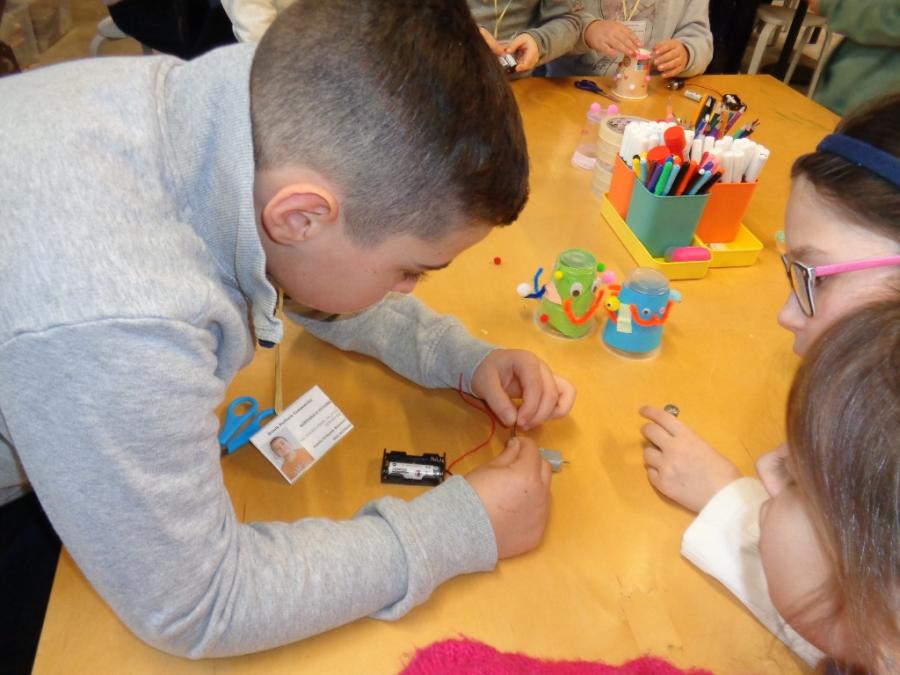 Gli alunni hanno avuto la possibilità di conoscere da vicino il mondo dell’elettronica e del riciclo. Hanno costruito un piccolo circuito per creare una macchina da scarabocchio personalizzata.