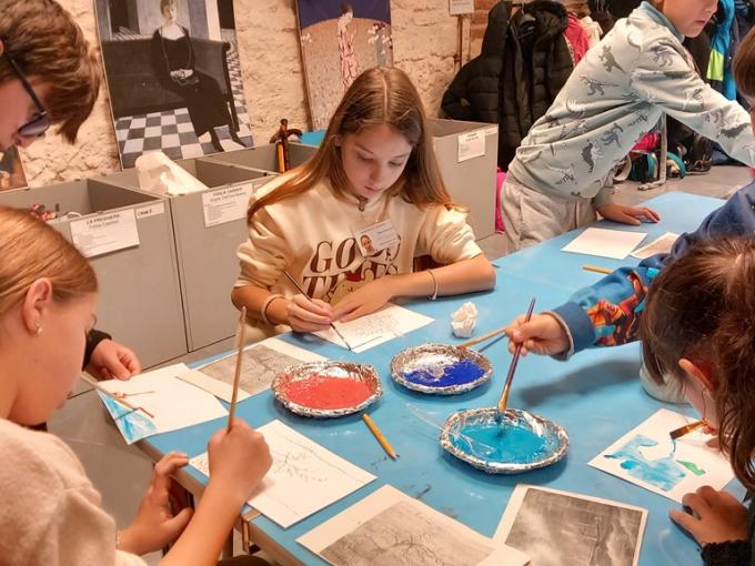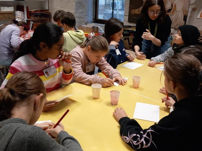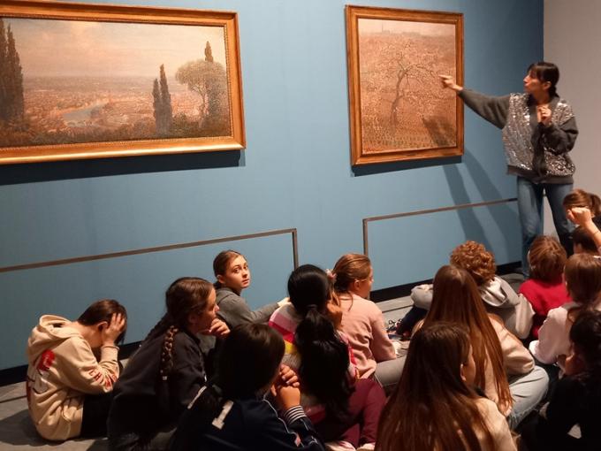 “Marina con barca a vapore”, “Il pesco fiorito” e “La preghiera” sono le opere su cui abbiamo focalizzato l’attenzione durante la visita alla Galleria d’Arte Moderna. Ci siamo appassionati ad approfondire le tecniche impiegate, il messaggio trasmesso e le sensazioni suscitate dalle opere. Attraverso il laboratorio abbiamo imparato come preparare i colori con acqua, aceto, uova e pigmenti colorati. Abbiamo applicato una nuova tecnica di calco con cui abbiamo riprodotto l’opera da noi scelta mediante la sua copia. Con i colori da noi stessi prodotti abbiamo colorato il nostro disegno.