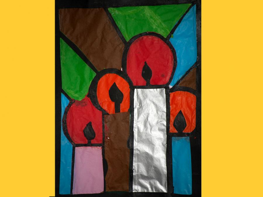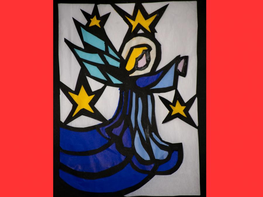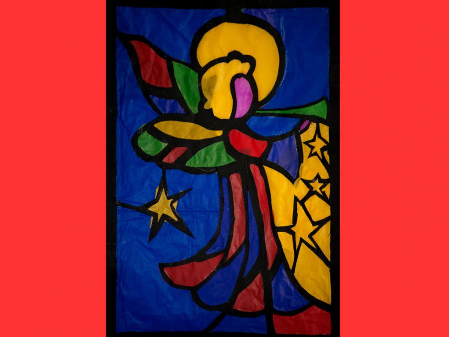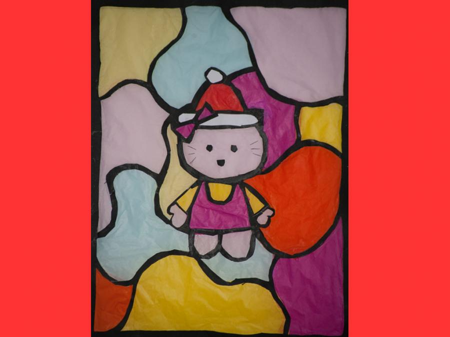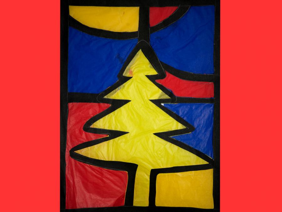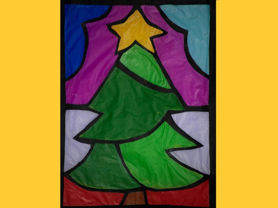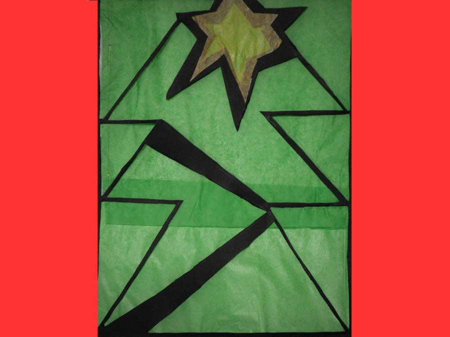 Ciascun studente è stato lasciato libero nella scelta del motivo, purché natalizio. L’esecuzione ha comportato diverse abilità e competenze soprattutto nel ritaglio, nel riempimento di spazi vuoti con carta velina colorata, nel trasferimento del motivo su un cartoncino nero e nel produrre un disegno con contorni spessi.
