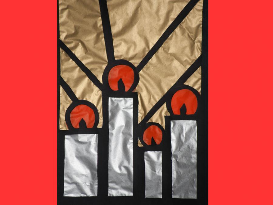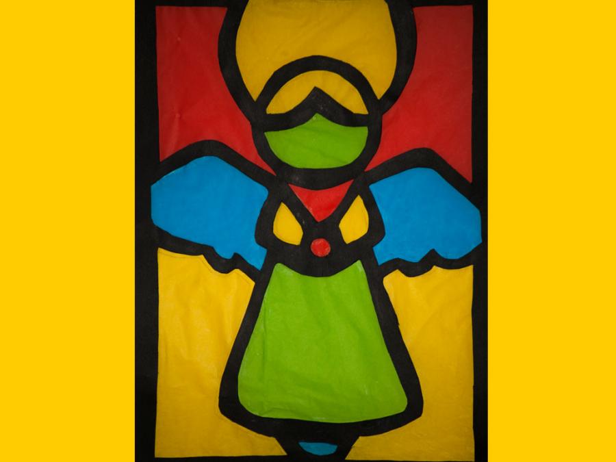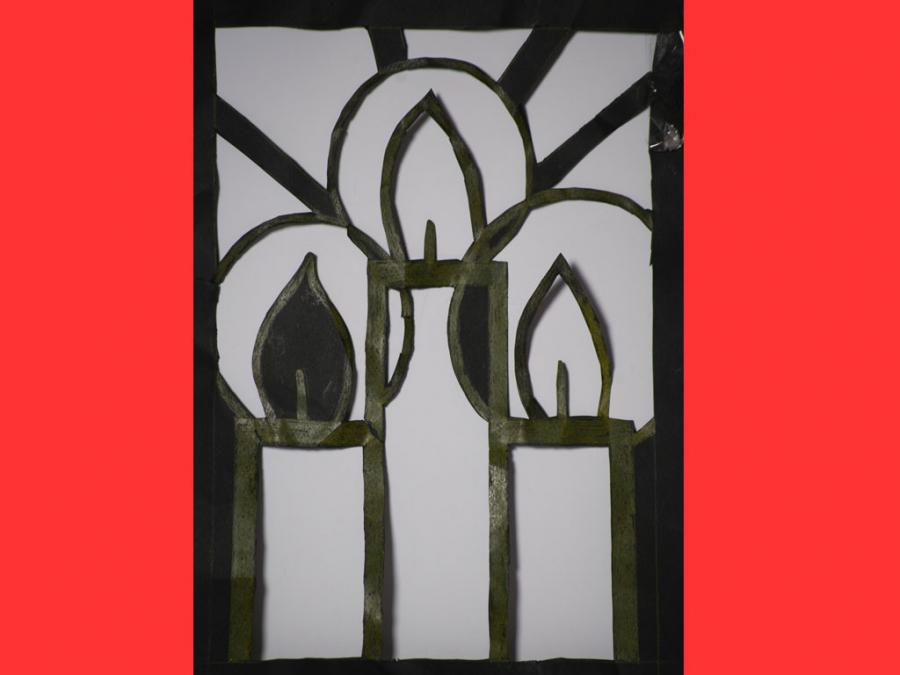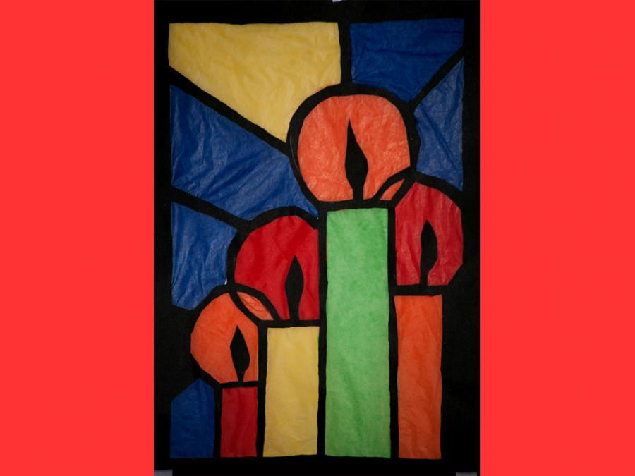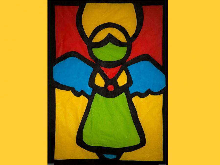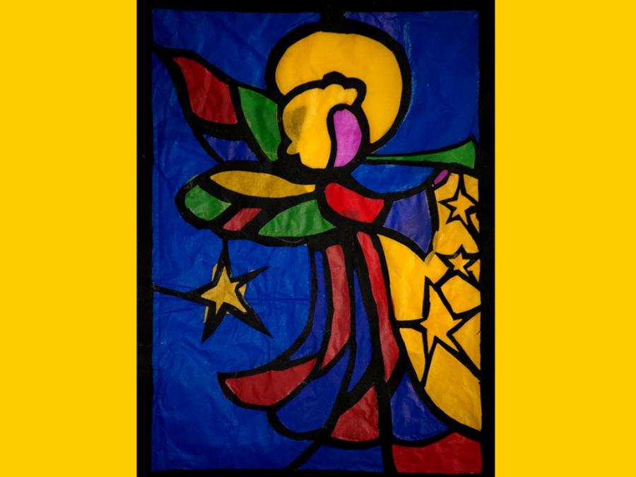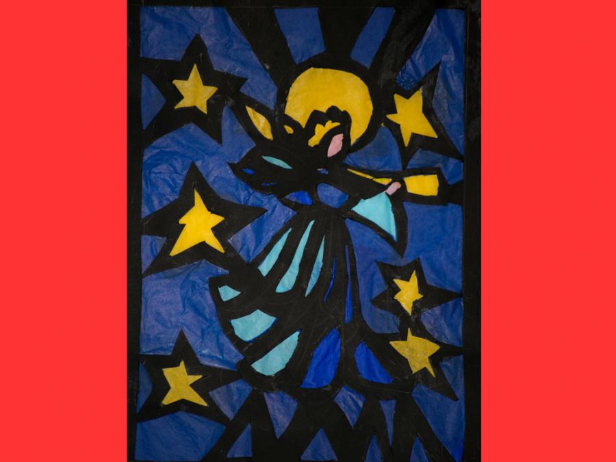 Ciascun studente è stato lasciato libero nella scelta del motivo, purché natalizio. L’esecuzione ha comportato diverse abilità e competenze soprattutto nel ritaglio, nel riempimento di spazi vuoti con carta velina colorata, nel trasferimento del motivo su un cartoncino nero e nel produrre un disegno con contorni spessi.
