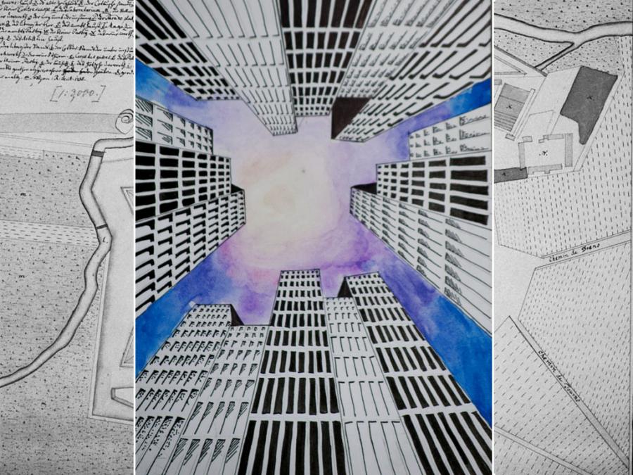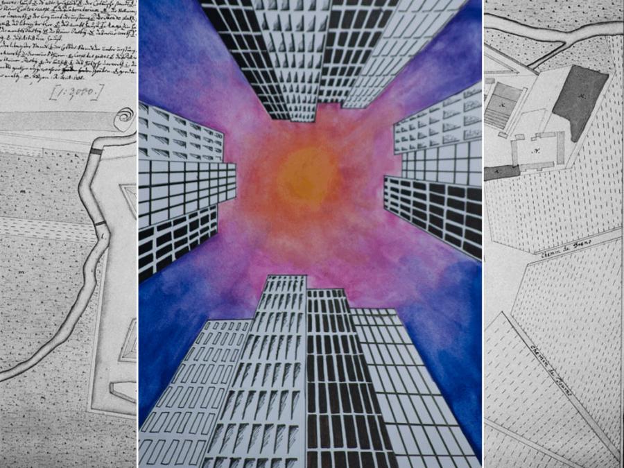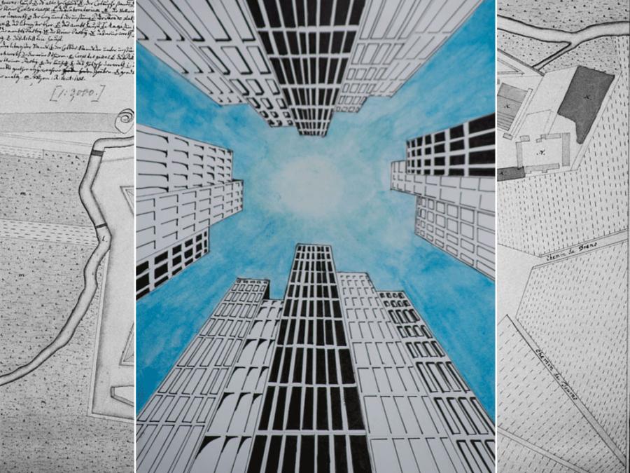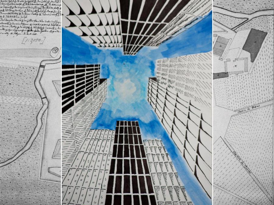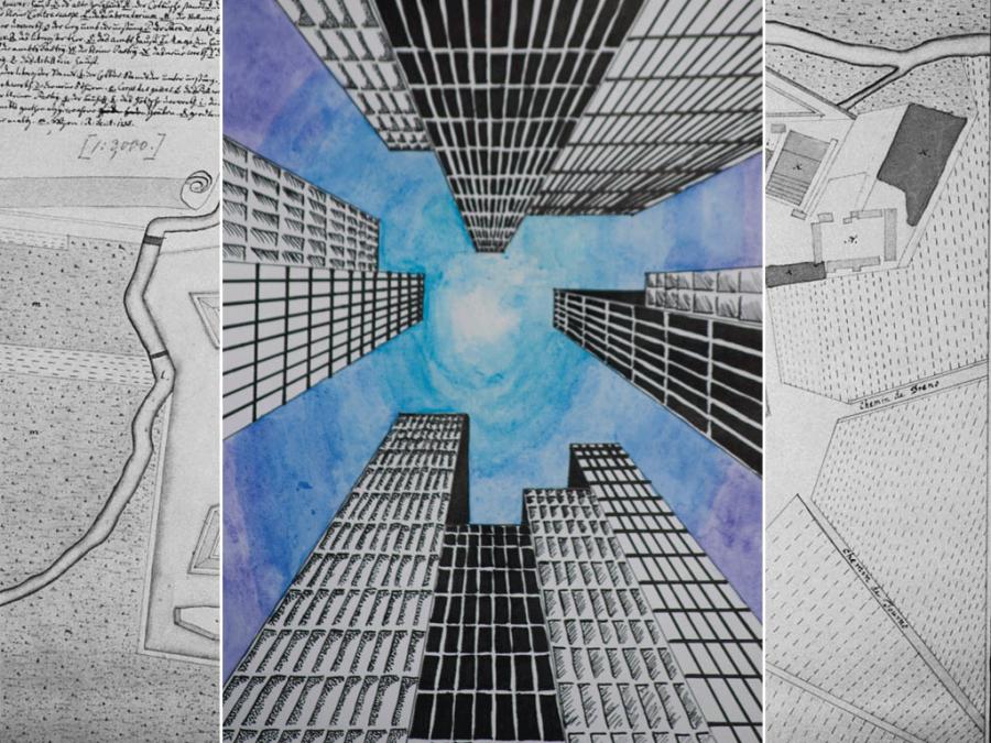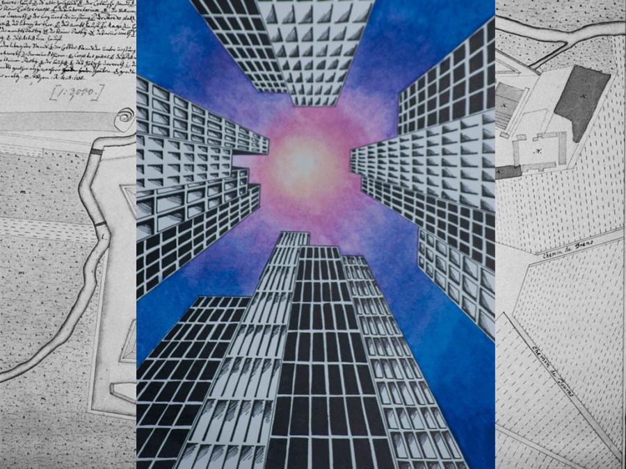 Per rappresentare il dinamismo delle moderne metropoli e il verticalismo dei loro palazzi, sempre più sviluppati in altezza, è stato adottato uno scorcio della città dal basso verso l’alto. L’elaborato ha trattato le regole della prospettiva centrale utilizzando le tecniche dell’acquerello o delle matite colorate per il cielo e il pennarello indelebile per gli edifici. Sono inoltre state sviluppate diverse tecniche per le ombreggiature delle finestre dei palazzi.