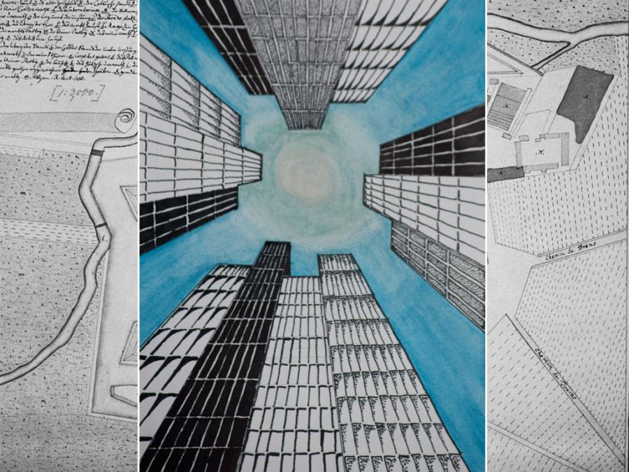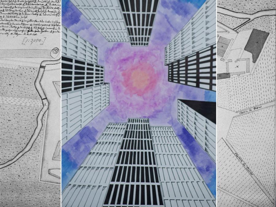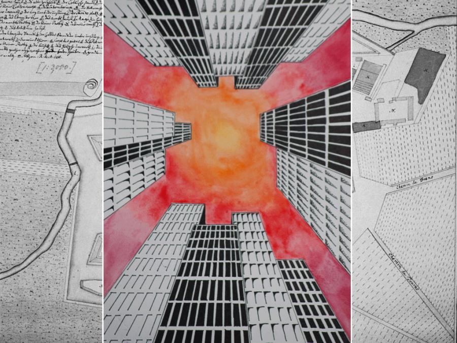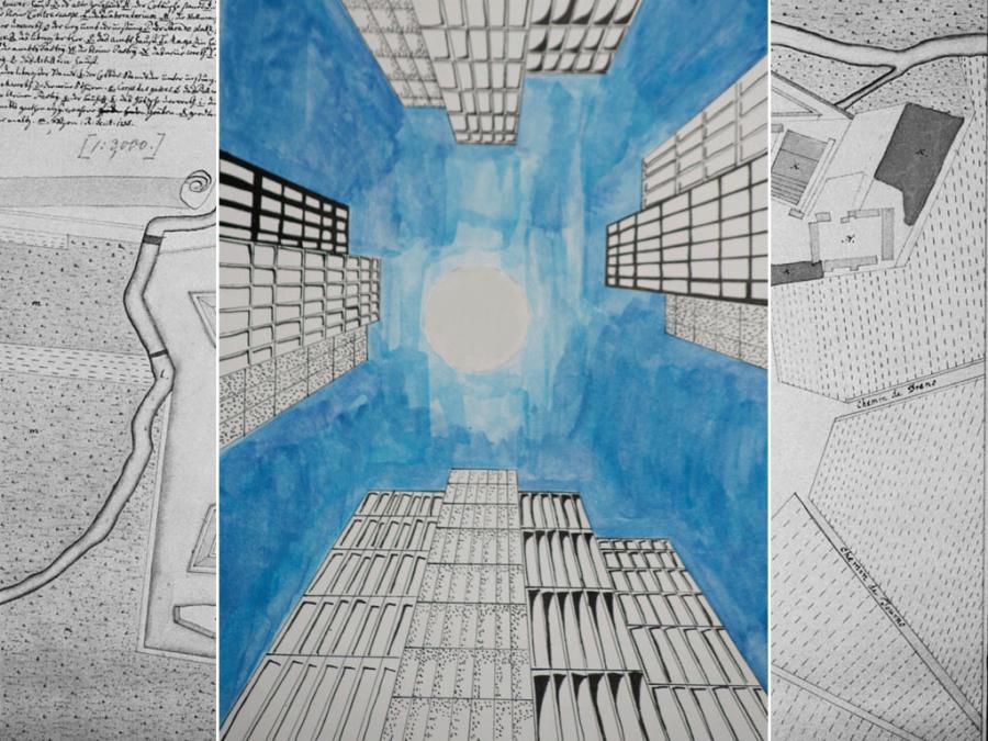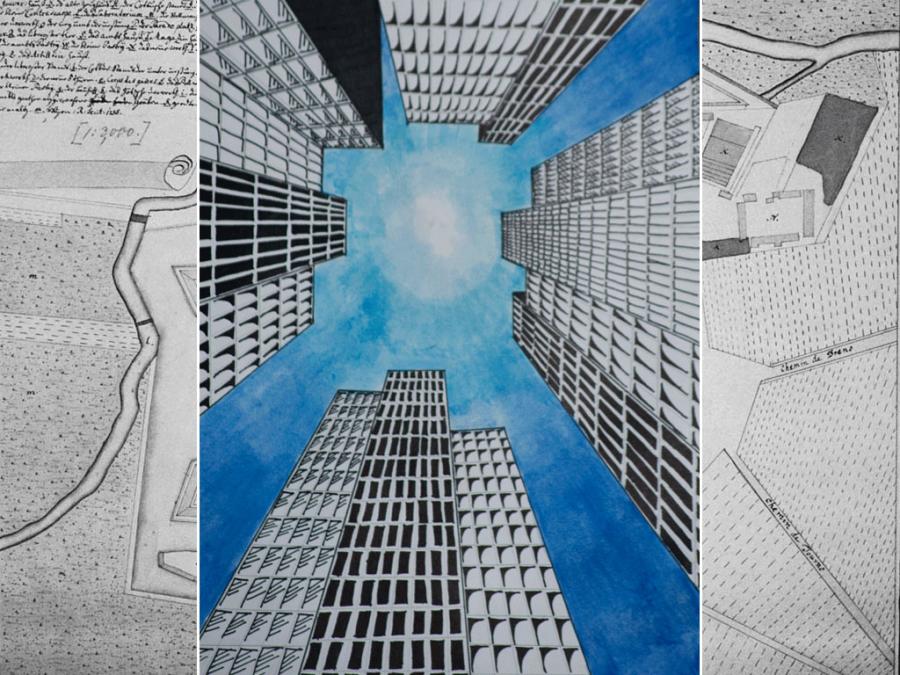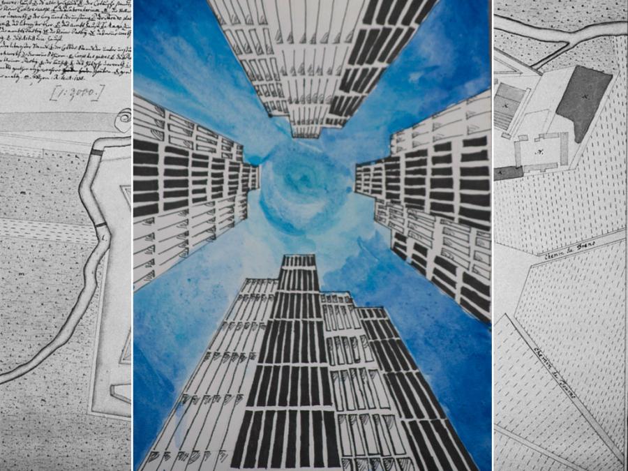 Per rappresentare il dinamismo delle moderne metropoli e il verticalismo dei loro palazzi, sempre più sviluppati in altezza, è stato adottato uno scorcio della città dal basso verso l’alto. L’elaborato ha trattato le regole della prospettiva centrale utilizzando le tecniche dell’acquerello o delle matite colorate per il cielo e il pennarello indelebile per gli edifici. Sono inoltre state sviluppate diverse tecniche per le ombreggiature delle finestre dei palazzi.