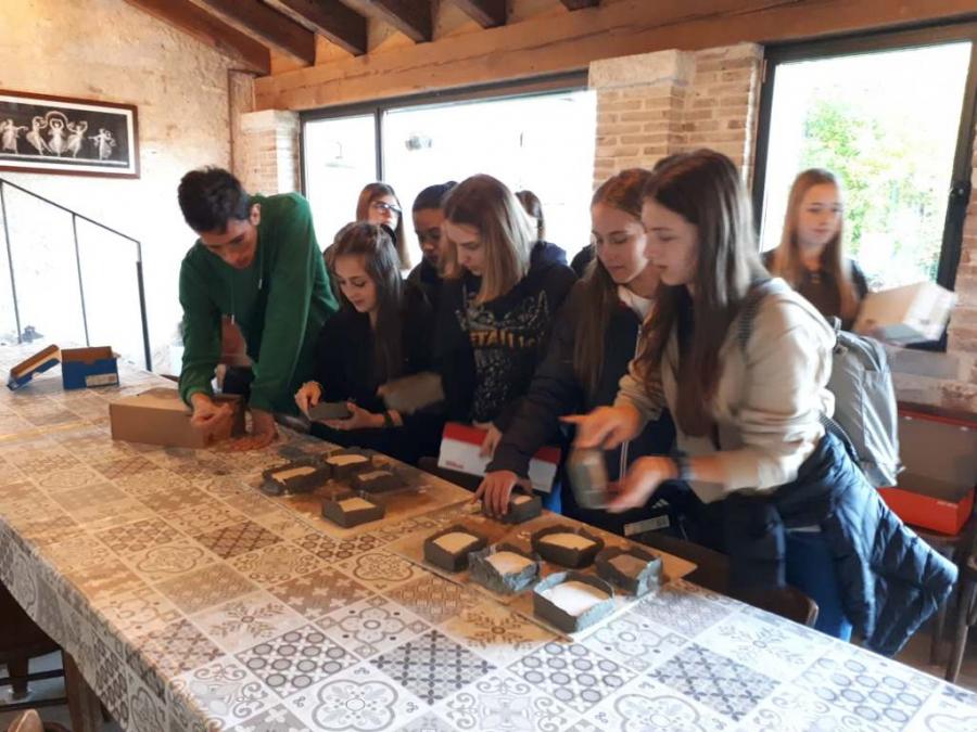 Nel laboratorio didattico: “Tra gesso e argilla, il calco” ii ragazzi hanno costruito un proprio manufatto originale in gesso dopo aver realizzato una stampa o un disegno inciso su una matrice in argilla. Il laboratorio rispecchia le problematiche del lavoro dello scultore e delle tecniche e materiali usati.